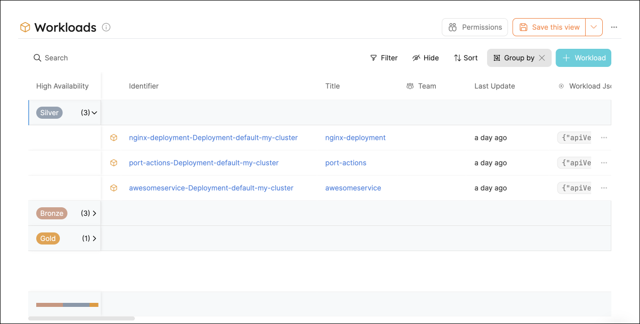To get an overall picture of our workloads' availability, we can use a table operation.